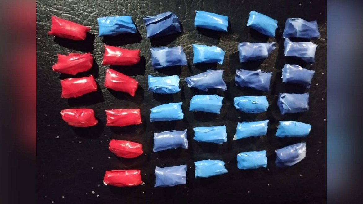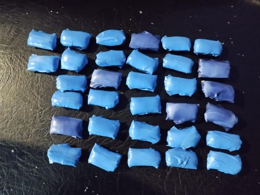 В ходе личного досмотра мужчин в кармане их одежды полицейские обнаружили 66 свёртков с синтетическим наркотиком – N-метилэфедроном весом порядка двух граммов каждый.
