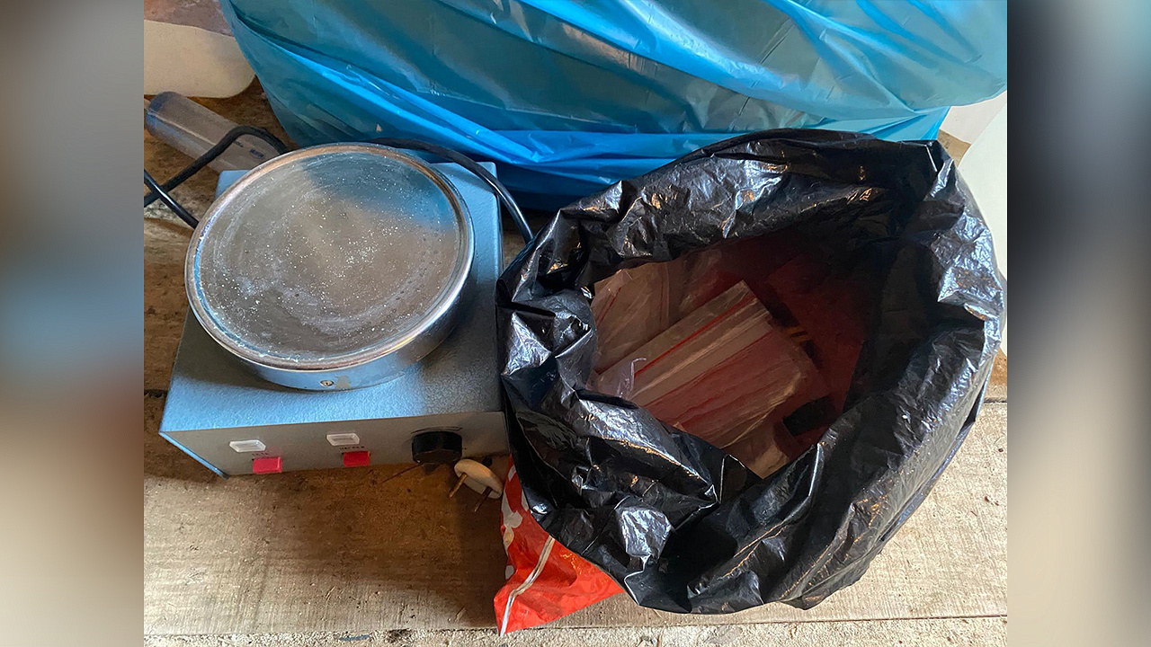 Ещё двоих участников организованной группы 1990 и 1996 года рождения сотрудники полиции задержали в Сосновском районе Челябинской области при попытке спрятать 600 граммов синтетических наркотиков в тайник. Как выяснилось, эти запрещённые вещества подельники, как и их задержанные сообщники, также изготовили сами, используя в качестве лаборатории гараж в Челябинске. Осмотрев этот бокс, оперативники обнаружили и изъяли ещё свыше 25 килограммов различной «синтетики» и используемое для её приготовления оборудование.