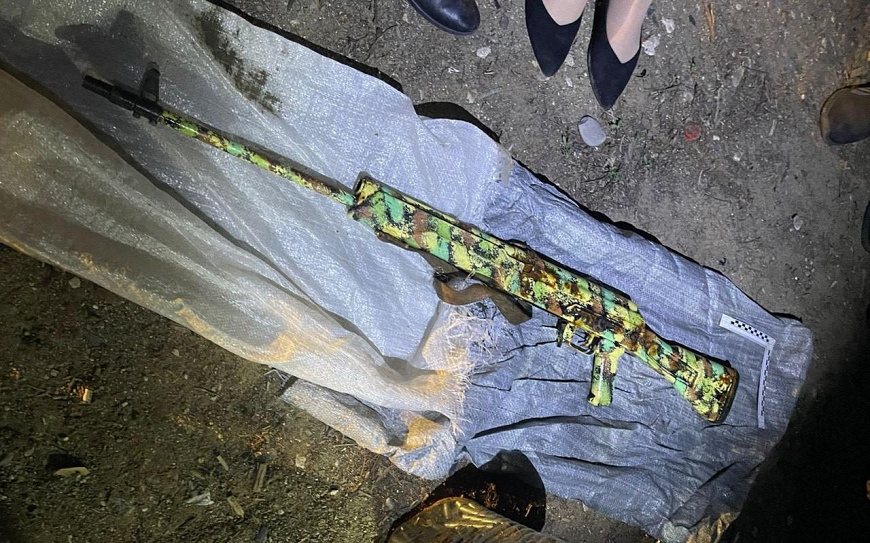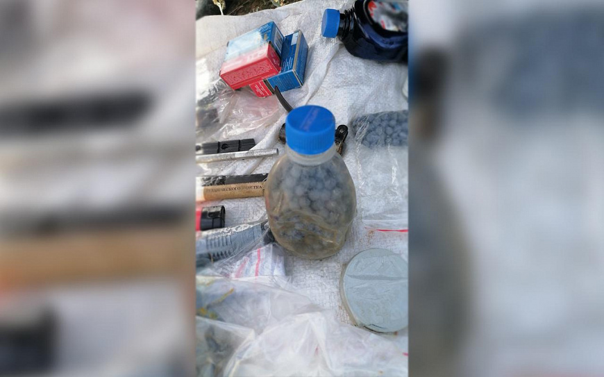 Из обоих тайников, закопанных в земле, оперативники изъяли охотничий гладкоствольный карабин Сайга-410С, гладкоствольное самозарядное ружьё Сайга-20С, более 370 патронов, шесть магазинов, а также затвор, металлическую рукоять, самодельный патронташ, порох, металлические шарики, картонные пыжи, три прицела и тактические перчатки.