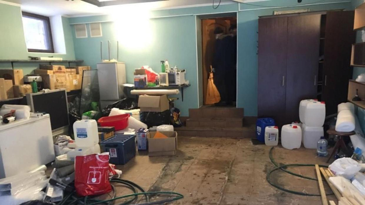 В ходе обыска в оперативники обнаружили и изъяли 2 полимерных пакета со светлым кристаллическим веществом, 40 канистр химических реактивов и прекурсоров, лабораторную посуду, мерные весы, респираторы и спецодежду.