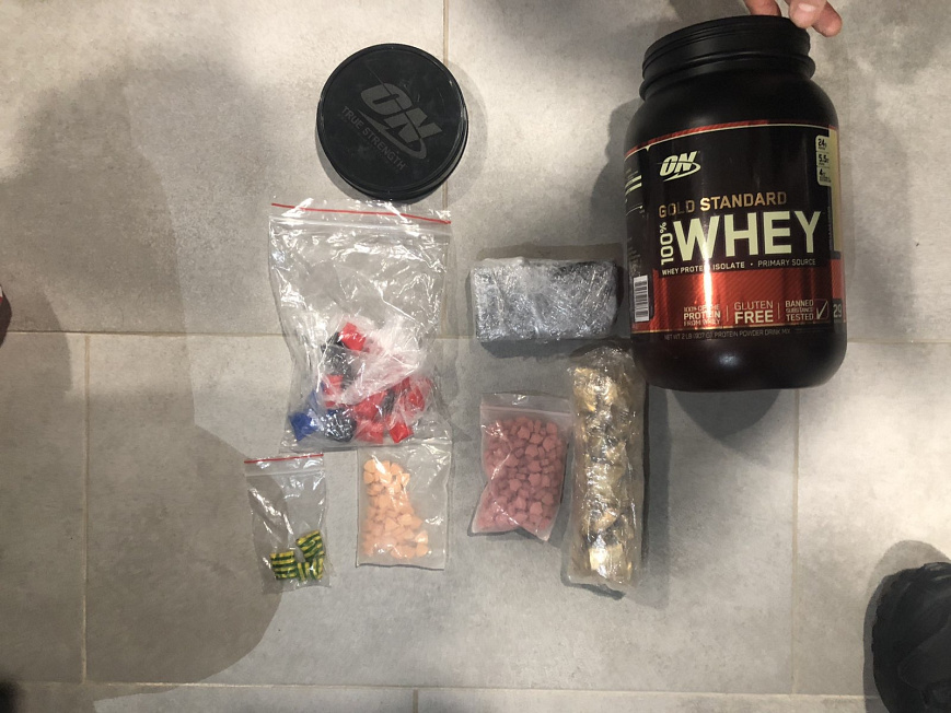 В результате были изъяты таблетки розового и оранжевого цветов (MDMA), амфетамин, марихуана, гашиш и метамфетамин, а также вещества, содержащие в своём составе наркотические средства – мефедрон и кокаин. Общий вес изъятых наркотиков составил 840 граммов. Полицейские также изъяли электронные весы, на которых злоумышленники фасовали запрещенные вещества, и упаковочный материал.