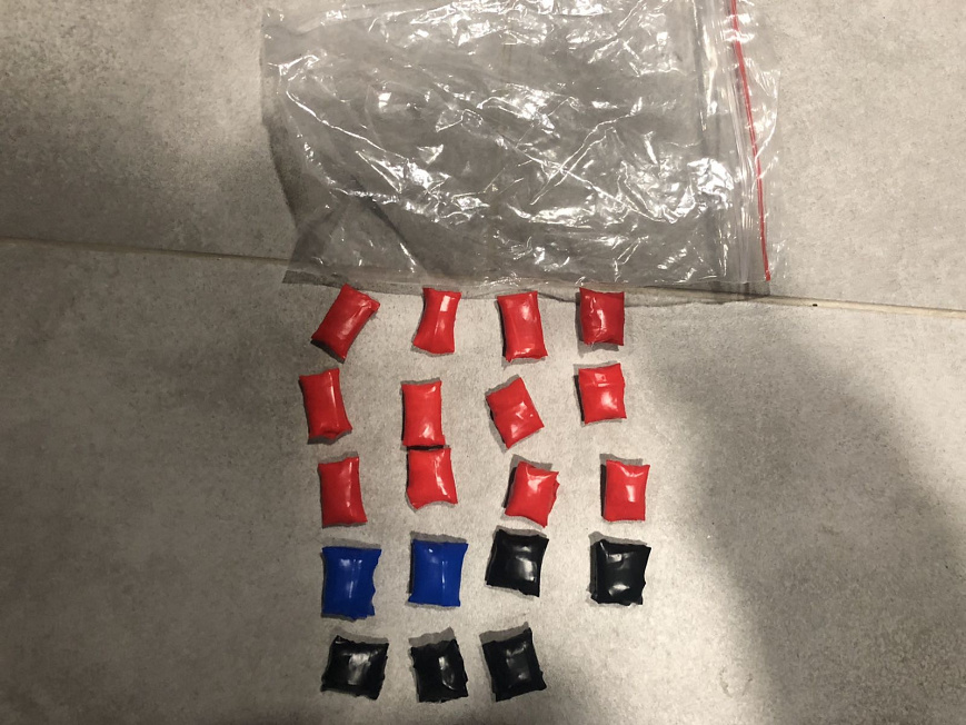 Наркосбытчики были задержаны транспортными полицейскими 6 января, когда вышли из дома, чтобы сбыть очередную партию наркотиков. В руке у 21-летнего задержанного был пакет, в котором находились 23 фрагмента керамической плитки. К каждому из них были прикреплены свёртки из цветной изоленты. Внутри свёртков сотрудники транспортной полиции обнаружили пакетики с порошкообразным веществом. В том же пакете была обнаружена стеклянная бутылка, в которой находился свёрток с наркотиком.