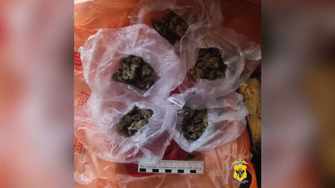 При осмотре частного домовладения подозреваемого правоохранители при помощи служебно-розыскной собаки обнаружили в подсобном помещении пять полимерных пакетов с растительным веществом серо-зелёного цвета с характерным запахом марихуаны.