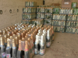 На месте происшествия, а также в используемом подозреваемым гараже полицейские обнаружили и изъяли 1038 литров водки, виски и коньяка сомнительного происхождения. Большинство бутылок не имели предусмотренной законодательством маркировки, а некоторые были оклеены этикетками, имитирующими акцизные марки, но не являющимися таковыми.