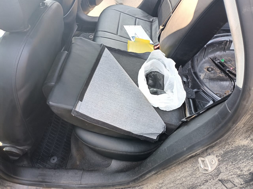 При осмотре автомобиля в багажном отделении полицейские обнаружили тайник, из которого изъяли два свертка с кристаллическим веществом светло-бежевого цвета. По результатам проведенной экспертизы установлено, что внутри находилось наркотическое средство – мефедрон общим весом 982 грамма.