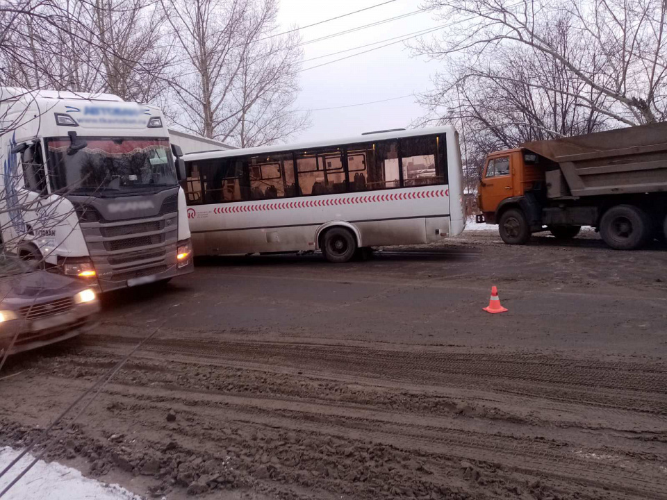 В Красноярском крае сегодня в 16-30 (по местному времени) на ул. Одесская грузовой автомобиль, выезжая с прилегающей территории, допустил столкновение с маршрутным автобусом.