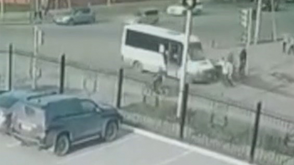Водитель пассажирского микроавтобуса двигался по улице Богдана Хмельницкого в направлении улицы 10 лет Октября. На оживлённом перекрёстке он продолжил движение на запрещающий сигнал светофора. В это время на пешеходном переходе находились трое подростков на велосипедах и дедушка с малолетним внуком. Злоумышленник допустил наезд на мужчину и ребёнка, после чего резко прибавил скорость и скрылся.