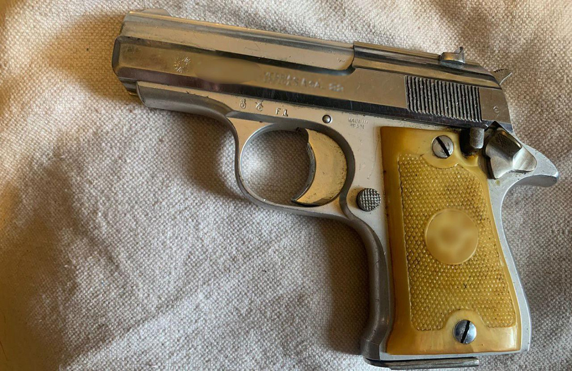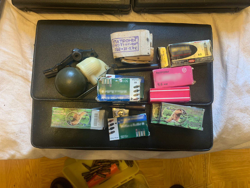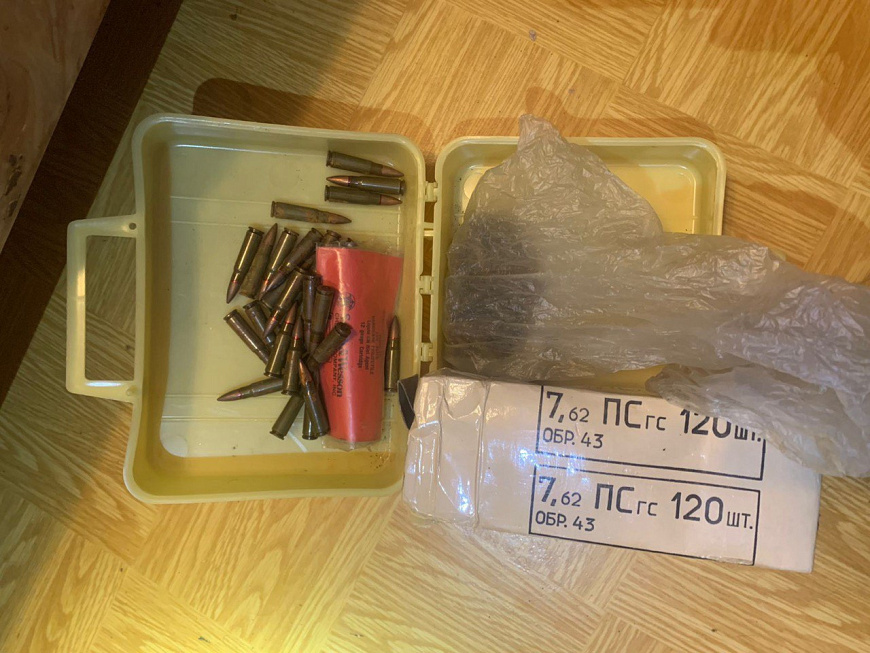 В ходе осмотра его квартиры полицейские обнаружили и изъяли пистолет и 558 патронов, которые были направлены на исследование в ЭКЦ УВД по ЮВАО. Согласно заключению экспертов, 207 патронов калибра 7,62 мм и 351 патрон калибра 5,6 мм изготовлены промышленным способом. Пистолет является нарезным ручным короткоствольным огнестрельным оружием калибра 22 мм иностранного производства. Всё изъятое пригодно для производства выстрелов.