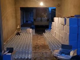 При осмотре двух квартир и подвала сотрудники полиции обнаружили и изъяли более 70 полимерных ёмкостей объёмом 5 литров, 26 стеклянных бутылок объёмом 0,5 и 0,7 литра, 2 стеклянные ёмкости объёмом 20 литров со спиртосодержащей жидкостью, а также два аппарата для производства контрафактной продукции, спирт-сырец, денежные средства в сумме более 2 миллионов рублей и 12 тысяч долларов США. Всего изъято более 400 литров сомнительного горячительного.