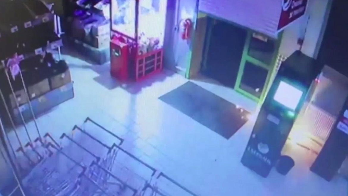 Изучив записи камер видеонаблюдения, полицейские выяснили, что двое мужчин в плащах и балаклавах, отжав пластиковую дверь и сорвав рольставни, проникли в фойе сетевого магазина, где находился платёжный терминал, закачали в него газо-воздушную смесь и подожгли. В результате произошло возгорание, однако аппарат значительных повреждений не получил. Не сумев его вскрыть, злоумышленники скрылись на автомобиле.