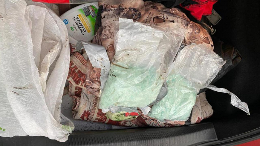 Одна из злоумышленниц, выступающая в роли оптового курьера, задержана сотрудниками Управления по контролю за оборотом наркотиков в городе Кисловодске. В багажном отделении её машины оперативники обнаружили два свёртка, обмотанные полимерной липкой лентой серого цвета, внутри каждого из которых находился прозрачный пакет с кристаллическим веществом светло-зелёного цвета.