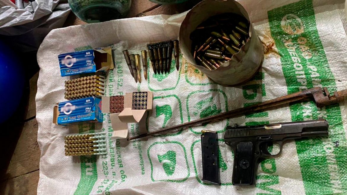 В соседней постройке сыщики изъяли четыре трёхлитровые банки с марихуаной, а также пакет с метамфитамином массой около 900 граммов. Здесь же полицейские обнаружили целый арсенал оружия и боеприпасов времён Великой Отечественной войны: пистолет ТТ со снаряжённым магазином, 12 снарядов и различные боеприпасы.