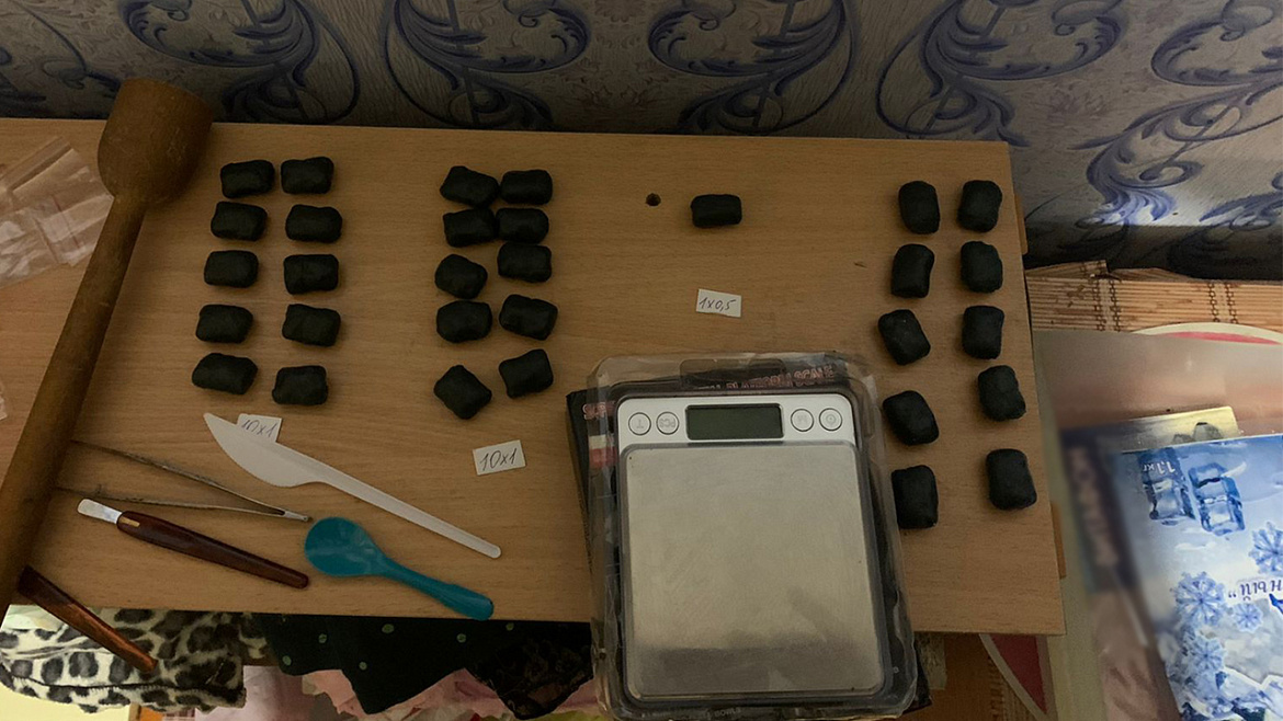 В рамках расследования в Хабаровске по месту жительства одного из фигурантов проведён обыск, в ходе которого обнаружен 31 свёрток с аналогичным наркотическим средством, а также весы и предметы для расфасовки «зелья».