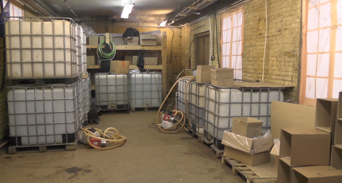 По итогам обыска в складских помещениях обнаружено и изъято 5,6 тонн алкогольной продукции (водка, виски, коньяк) в бочках, а также около 320 пятилитровых канистр с алкоголем общим объёмом 1,5 тонны и около 50 пустых канистр. Изъятое направлено на экспертизу.