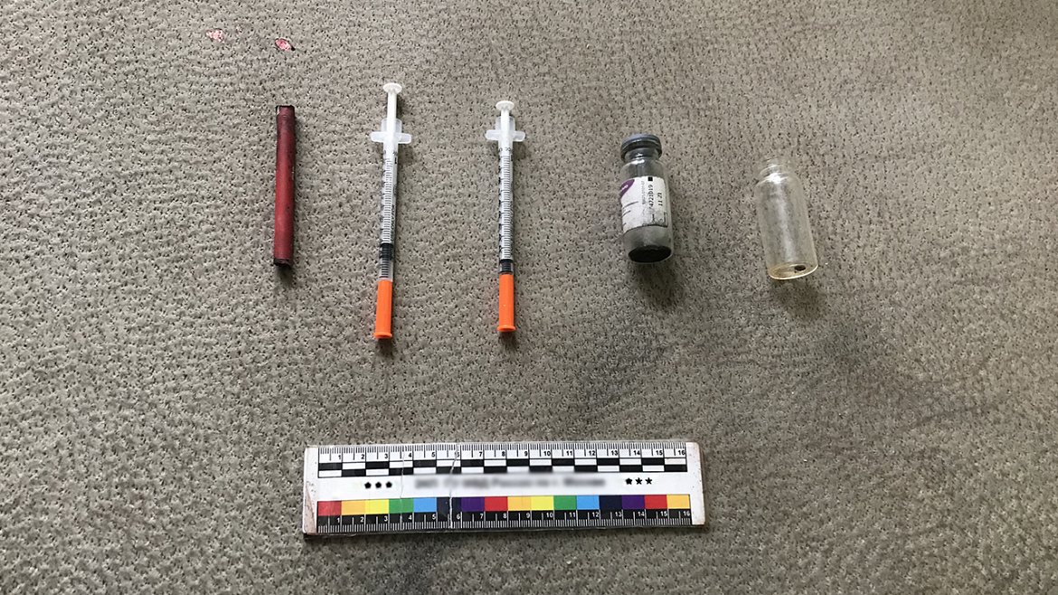 Полицейские обследовали жилое помещение, где обнаружили и изъяли шприцы, стеклянные флаконы со следами нагара, полимерную трубку со следами нагара, а также иные предметы, используемые для потребления запрещённых веществ.