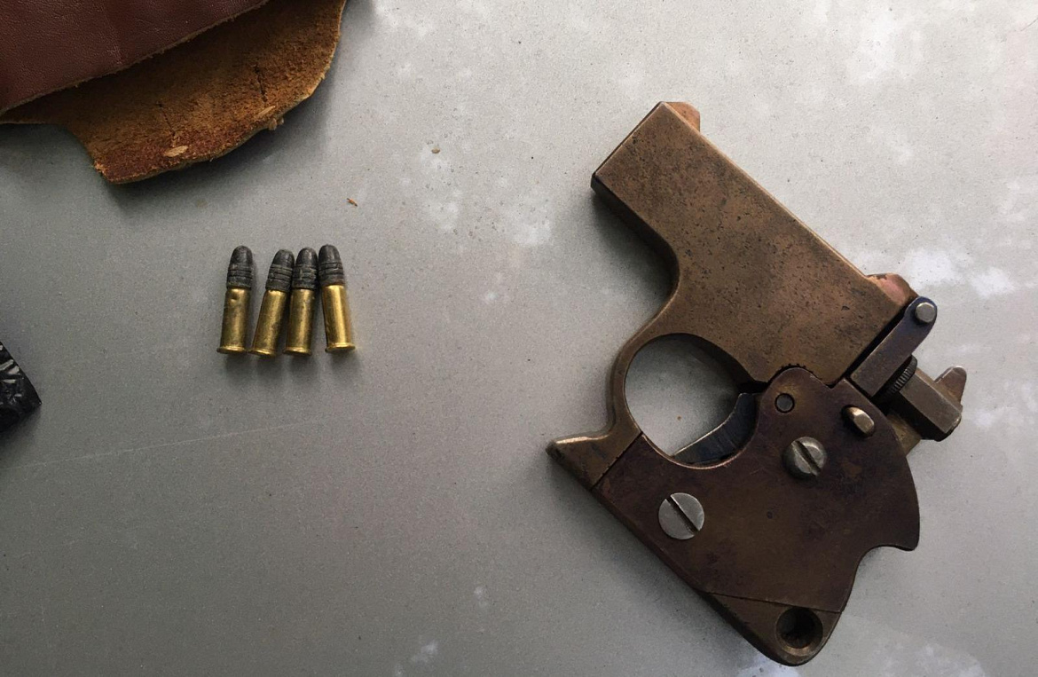 В ходе личного досмотра и в домах злоумышленников стражами правопорядка обнаружены и изъяты патроны разного калибра и три единицы кустарно изготовленных пистолетов.