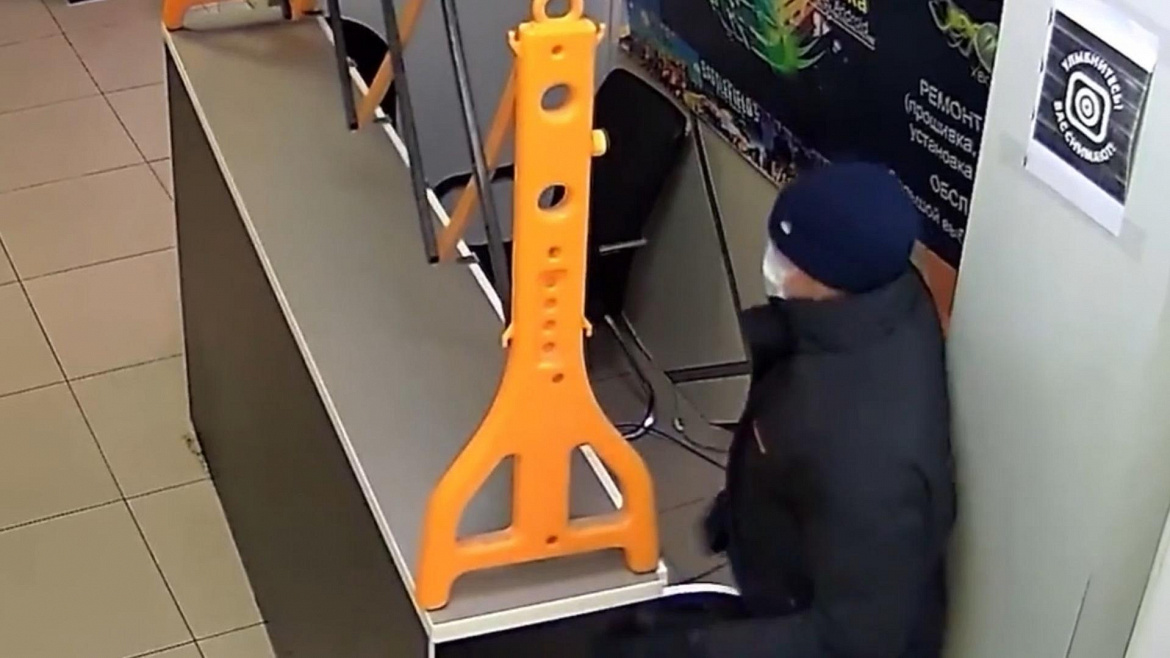 На место происшествия прибыла следственно-оперативная группа. Камеры видеонаблюдения, установленные внутри помещения, зафиксировали преступление: мужчина в тёмной одежде и маске отодвинул стойку торговой точки, вскрыл ящики, где хранился товар, и похитил видеокарты.