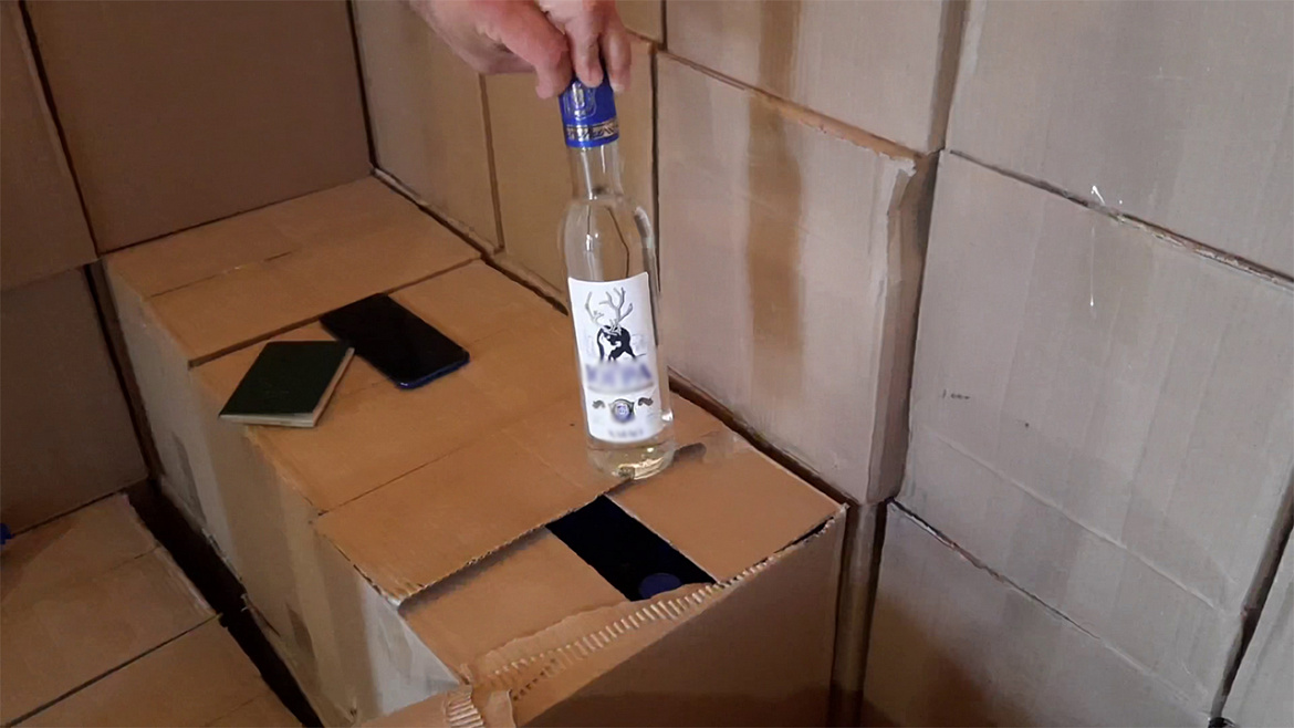 Установлено, что он хранил в арендованном гараже 5276 бутылок водки объёмом 0,5 л. Кроме того, 160 бутылок изъято из припаркованного рядом автомобиля покупателя и 54 бутылки в одном из торговых павильонов по улице Майской, куда злоумышленник предоставил продукцию на реализацию. Общая сумма нелегального спиртного составила более 1 миллиона рублей. Экспертиза установила, что изъятая алкогольная продукция не соответствует требованиям госта и является спиртосодержащей жидкостью на основе этилового спирта.
