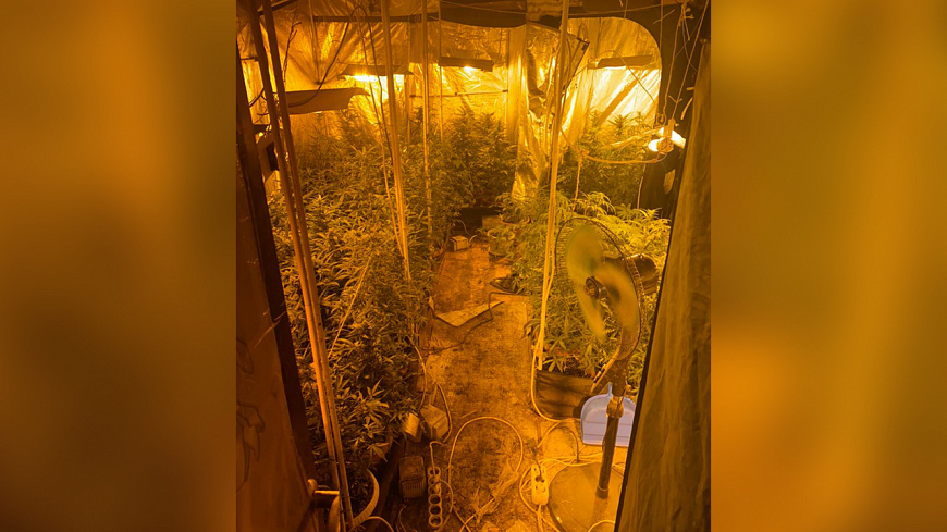 В результате обследования жилища злоумышленника полицейские в одной из комнат обнаружили плантацию конопли. Изъято 104 куста запрещённого растения. Также в помещении обнаружены и изъяты: мешок с веществом растительного происхождения, бумага для самокруток, гриндер, прекурсоры и весы. Согласно проведённому исследованию установлено, что в мешке находится наркотическое средство каннабис массой более 2,7 кг.