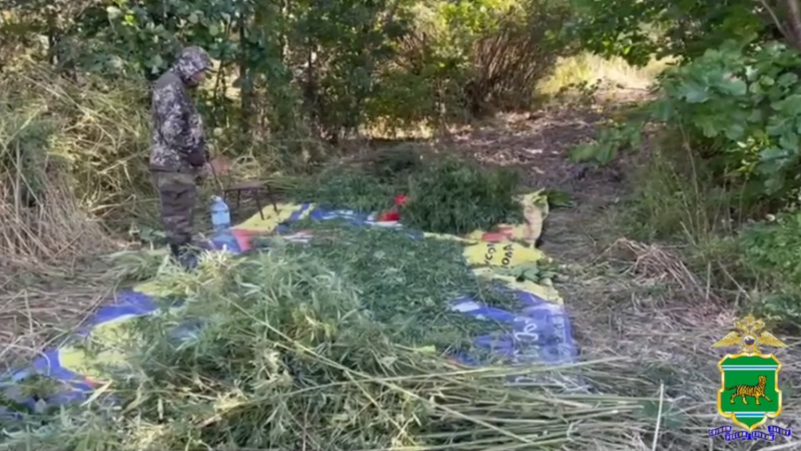 Сотрудники отдела по контролю за оборотом наркотиков Управления МВД России по Еврейской автономной области в результате проведения оперативно-розыскных мероприятий вышли на след и задержали у села Димитрова ранее судимого 63-летнего жителя Хабаровска, который собирал в лесу дикорастущую коноплю и складывал её на тент для сушки.