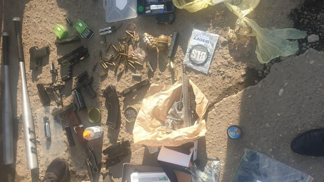 Также в транспортном средстве задержанного были изъяты автомат, пистолеты, патроны, гильзы и учебная граната. Согласно исследованию, всё обнаруженное оружие является охолощённым.