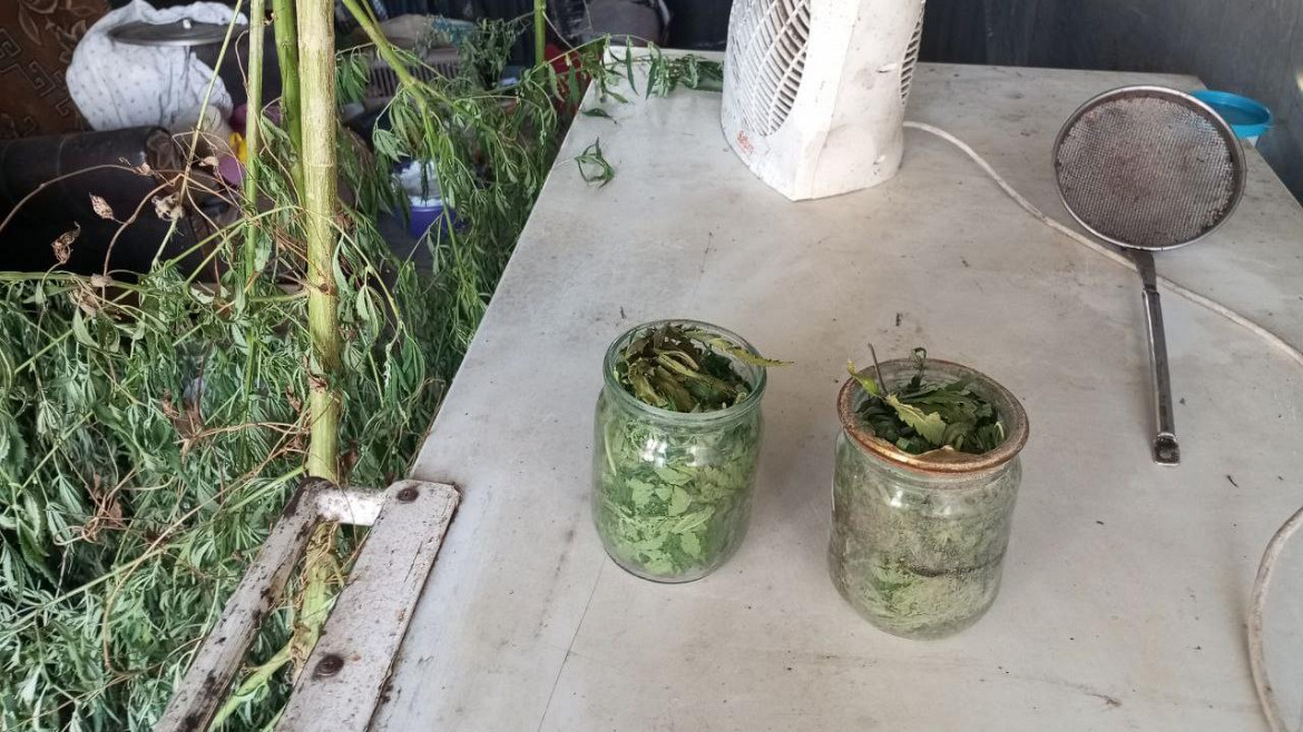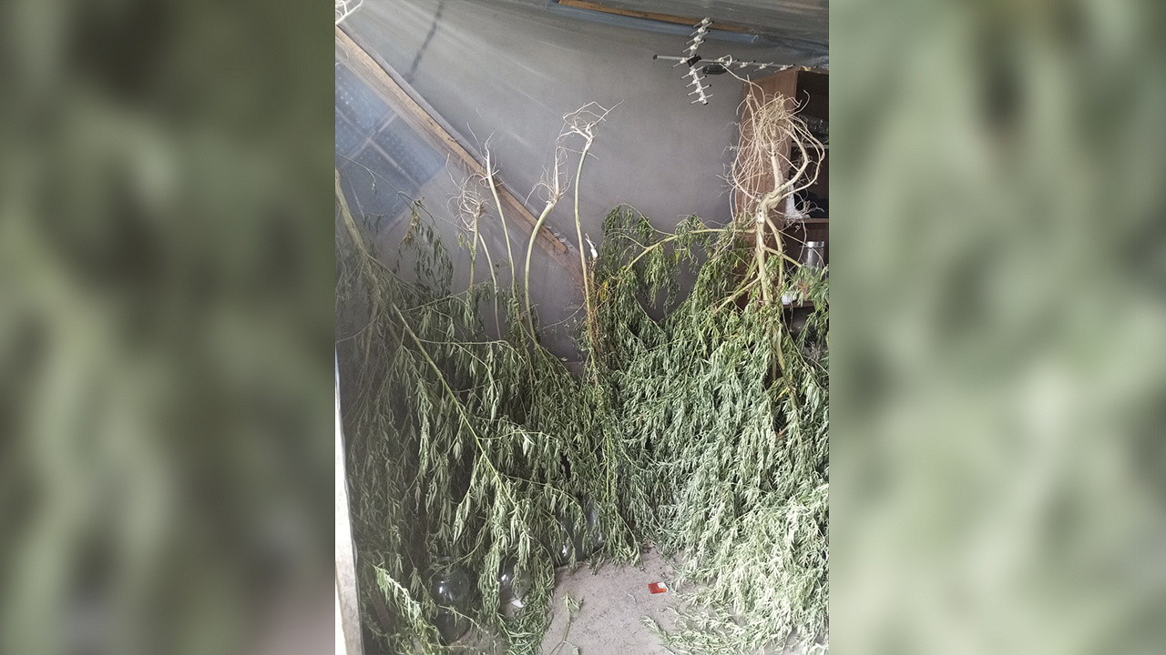 В ходе осмотра домовладения подозреваемого оперативники обнаружили и изъяли две банки объёмом 0,5 литра с серо-зелёным веществом растительного происхождения с характерным запахом марихуаны массой около 100 г, а также 11 кустов конопли весом порядка 2 кг.