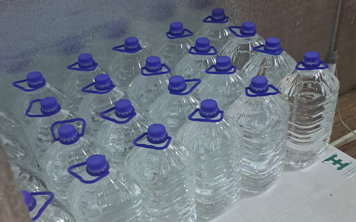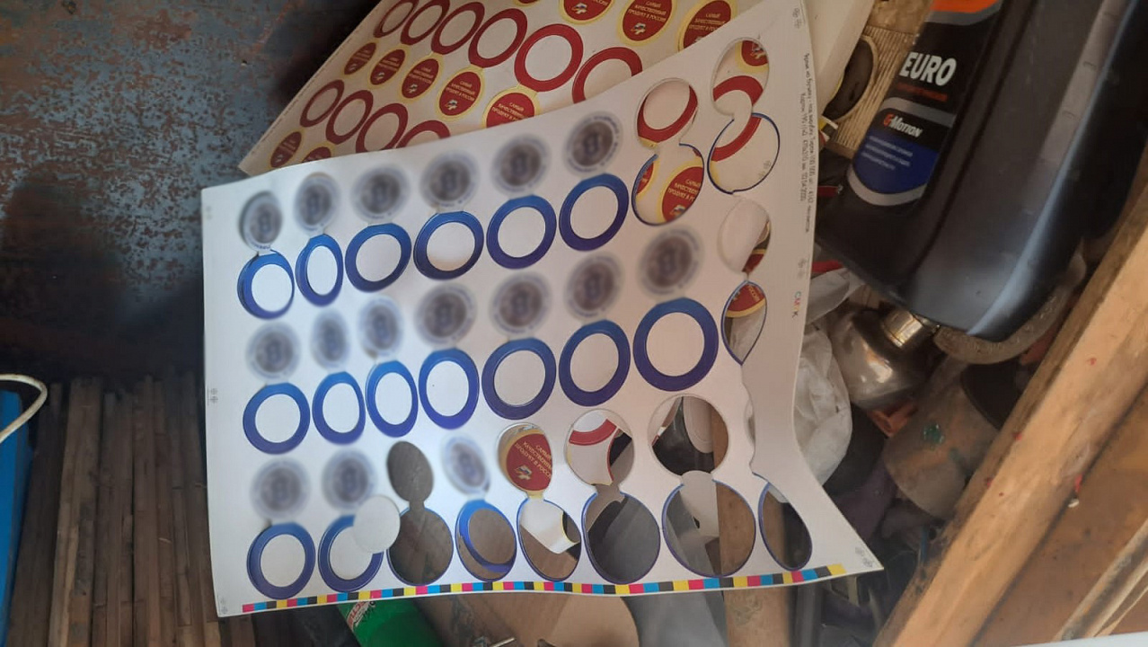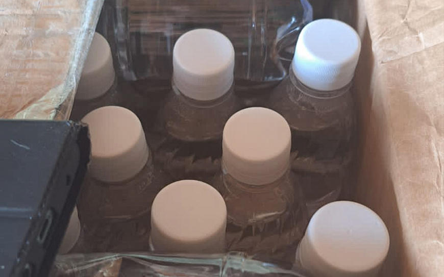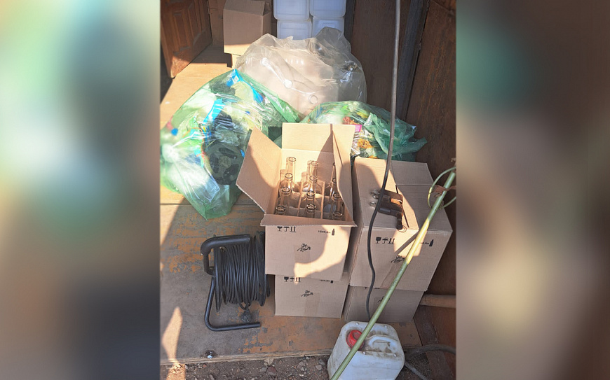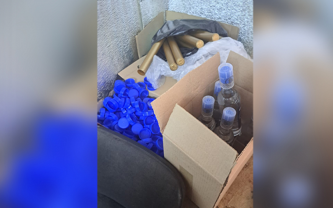 При проведении обысковых мероприятий оперативники изъяли из помещения ёмкости со спиртосодержащей жидкостью без акцизов общим объёмом около трёх тысяч литров, а также подготовленные для сбыта немаркированные 125 бутылок с сомнительным горячительным объёмом по 0,5 литра, на которых имелись этикетки известных производителей водки. Кроме того, были изъяты приспособления, использовавшиеся для розлива контрафакта, а также стеклянная тара, крышки и различные наклейки.