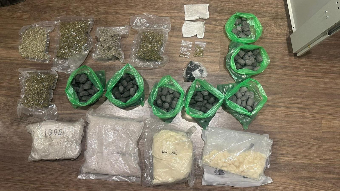 По месту жительства подозреваемых сотрудники полиции в ходе обыска обнаружили множество кусков затвердевшей смеси из цемента, в которых находились запрещённые вещества, а также пакеты с нерасфасованными наркотиками. В общей сложности у сожителей было изъято около четырёх килограммов мефедрона, порядка 200 граммов гашиша и 460 граммов марихуаны.