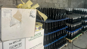 Задержав бутлегеров, оперативники в ходе обыска обнаружили 4700 бутылок изготовленной ими спиртосодержащей жидкости, оклеенных этикетками известных производителей коньяка, виски и игристых вин.