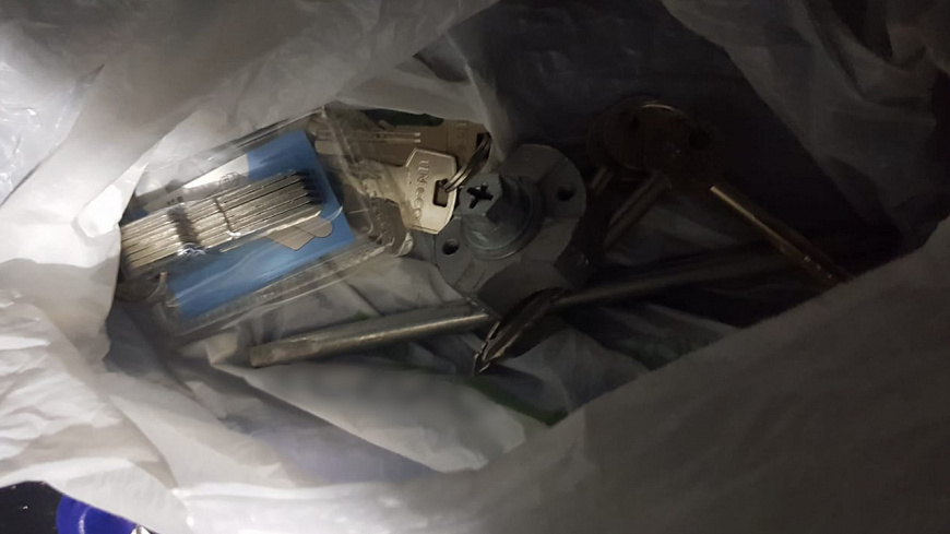 Кроме этого, при обыске у злоумышленника сотрудники полиции изъяли так называемые отмычки - наборы уже изготовленных дубликатов ключей и их заготовок, а также специальные технические устройства, используемые для вскрытия замков.