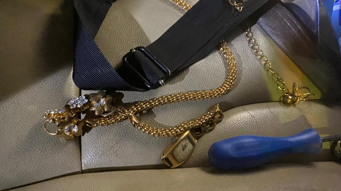 При досмотре транспортного средства, на котором передвигался злоумышленник, правоохранители обнаружили и изъяли отвёртку, а также несколько похищенных ювелирных украшений.