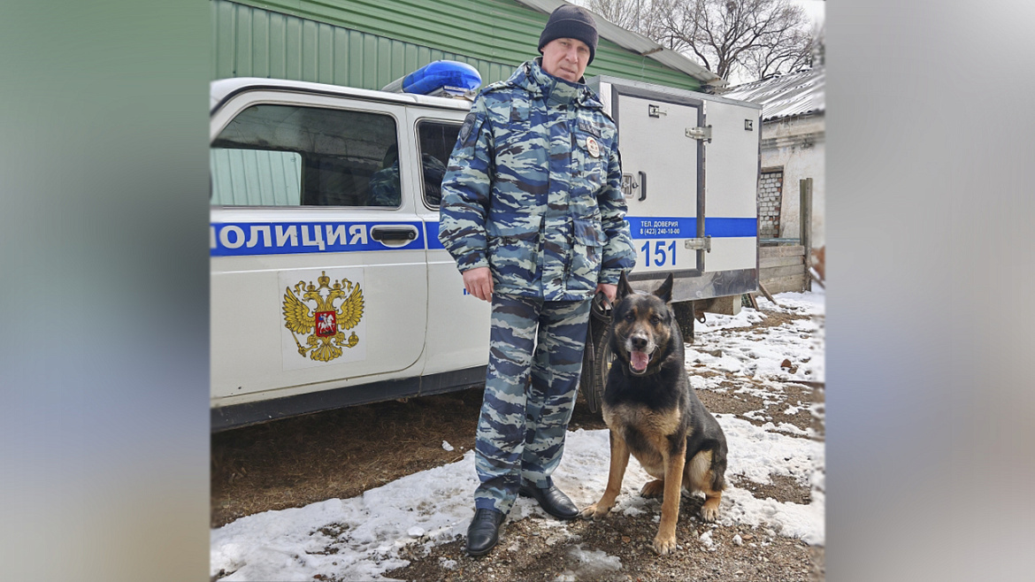 Служебный пёс по кличке Ефим помог полицейским Уссурийска задержать подозреваемого в краже труб