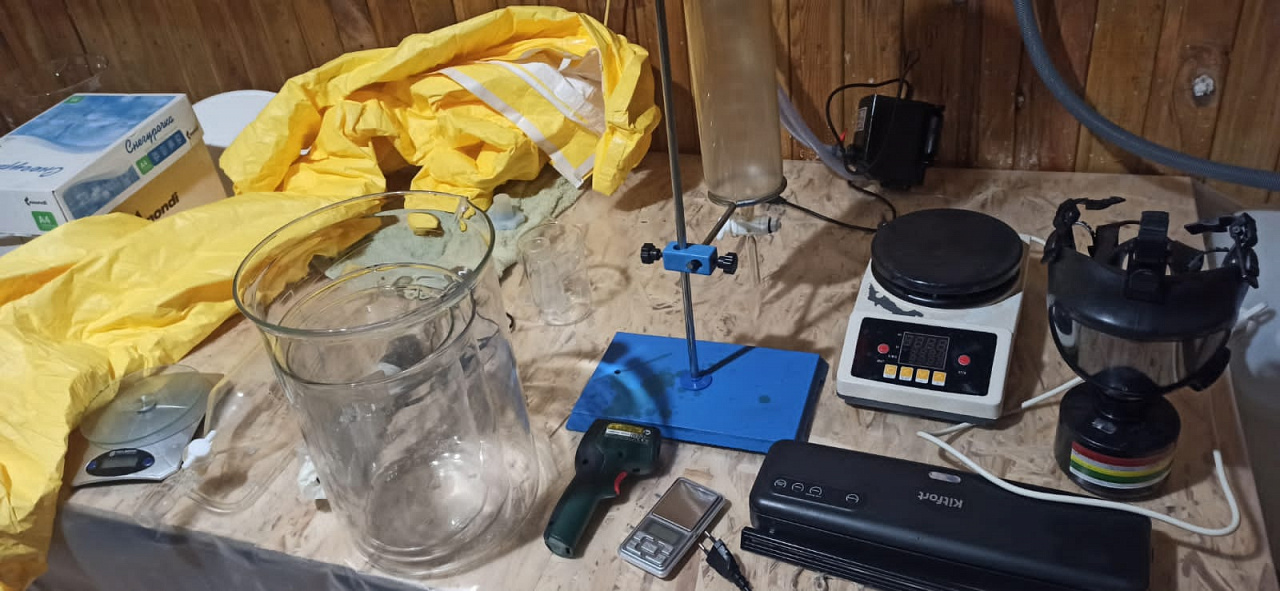 Водитель, безработный 33-летний местный житель, был доставлен в дежурную часть для дальнейшего разбирательства. По его словам, из-за желания заработать он решил устроиться химиком в один из подпольных интернет-магазинов, распространяющих наркотические средства. Через мессенджер он получал все инструкции, а также координаты мест, откуда необходимо забрать оборудование и реактивы для изготовления запрещённых веществ.