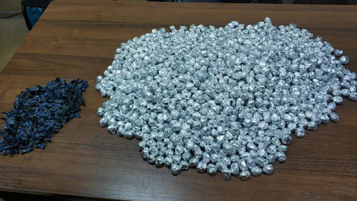 При личном досмотре водителя и пассажиров, а также при обследовании автомобиля полицейскими обнаружено и изъято более 1500 свёртков из полимерного материала. Результаты химического исследования показали, что их содержимое является наркотическим средством героином.