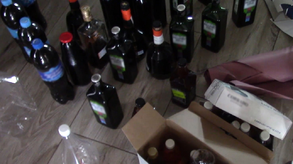 Во время проведения обысковых мероприятий из цехов и складских помещений изъято около 2,5 тонн готовой спиртосодержащей продукции в бутылках под видом легальными напитками, а также 2 тонны спирта.