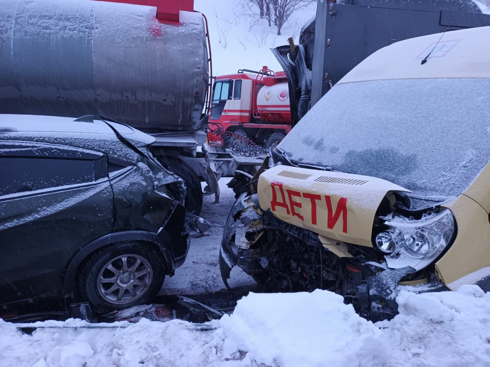 3 февраля 2023 года на участке автодороги Южно-Сахалинск – Холмск, недалеко от с. Чапланово, произошло дорожно-транспортное происшествие с участием школьного автобуса, бензовоза, грузовика и легкового автомобиля.