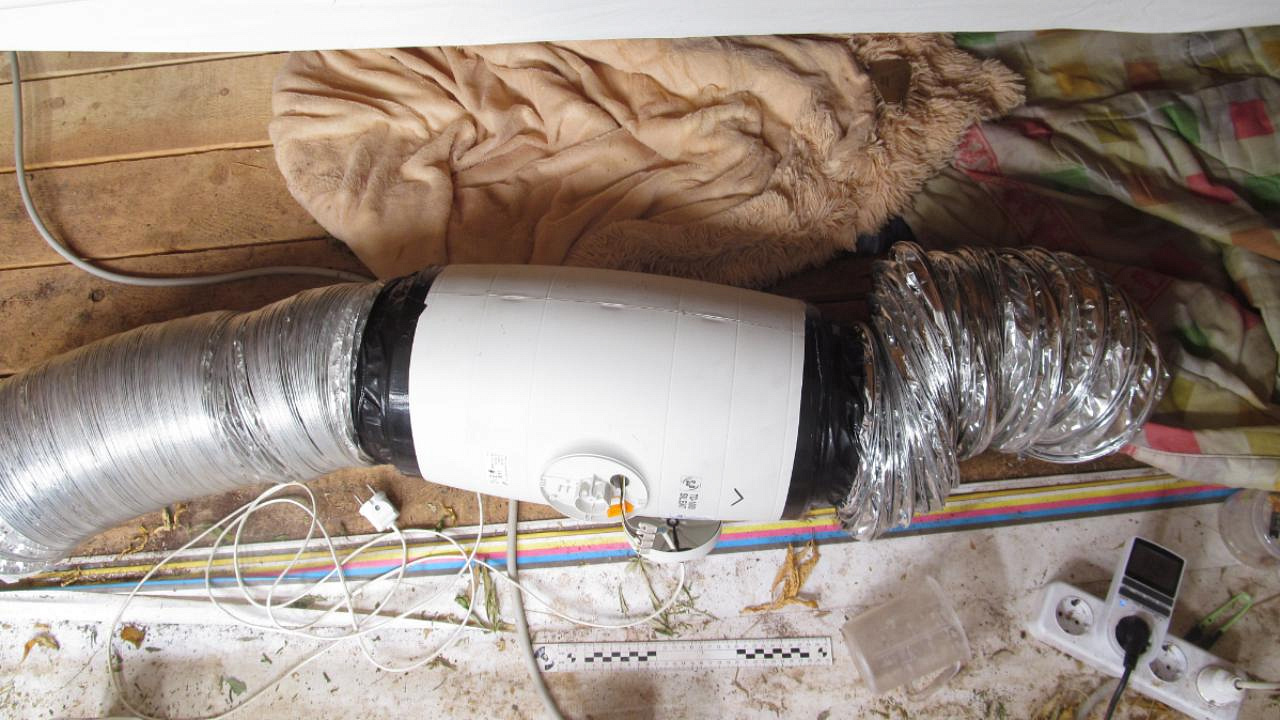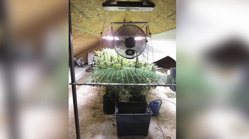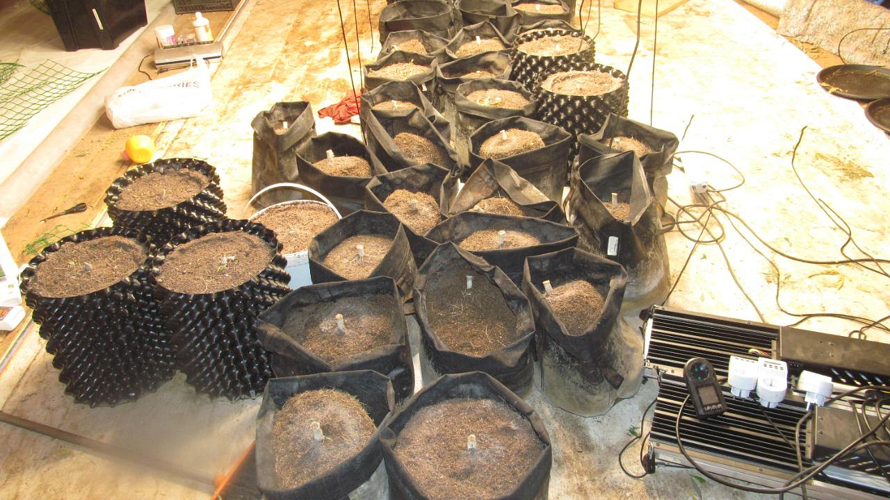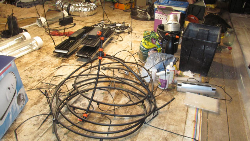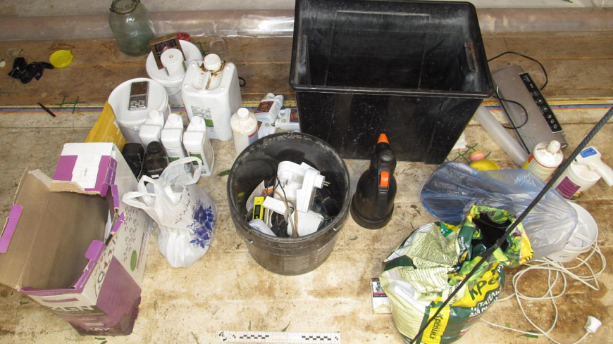 Оперативники изъяли оттуда 20 полимерных горшков с кустами конопли, 29 текстильных мешков и 7 полимерных мешков с грунтом и остатками корневой системы растений, а также полимерный контейнер с измельченными частями «дурман-травы». Кроме того, на участке найдено большое количество удобрений, осветительных приборов, поливальных устройств, весов и ёмкостей.