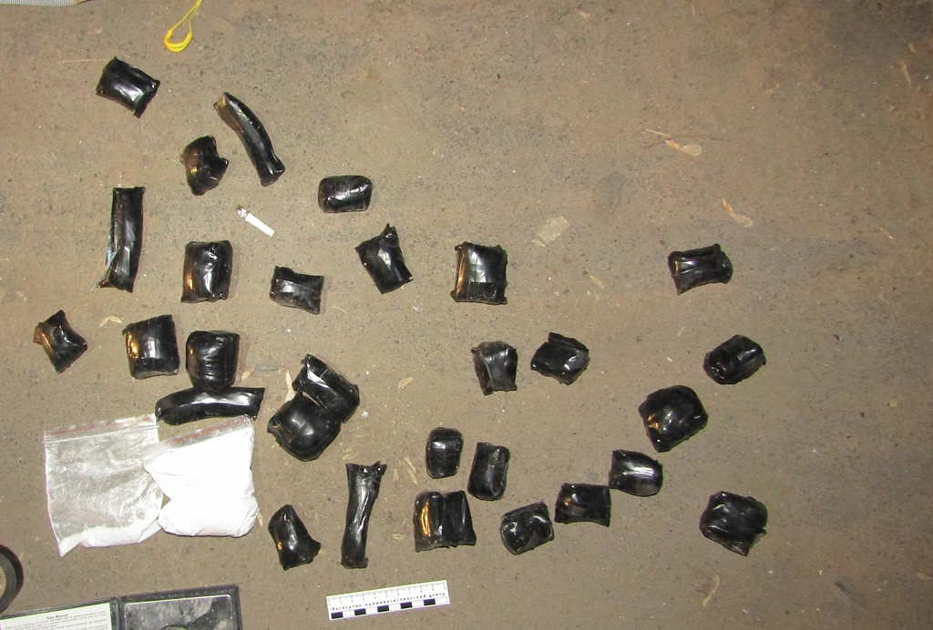 При осмотре автомобиля на заднем пассажирском сиденье в рюкзаке был обнаружен и изъят 31 свёрток с порошкообразным веществом белого цвета общей массой свыше 600 граммов. Проведённое исследование части изъятого показало, что данный материал содержит в своём составе наркотическое средство – мефедрон.