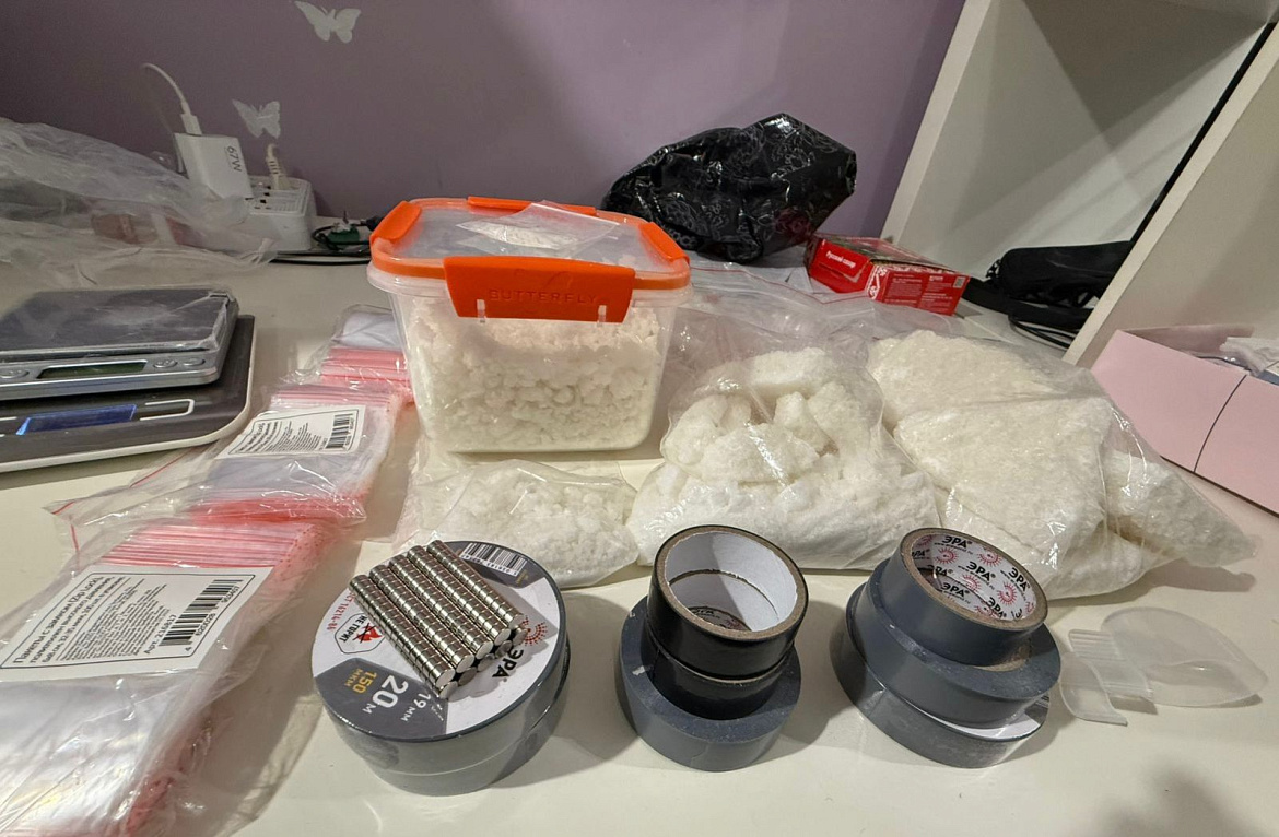 В ходе личного досмотра у мужчины было обнаружено и изъято 23 свёртка с мефедроном весом свыше 80 г, что подтверждено экспертизой. Во время обыска места временного проживания злоумышленника, расположенного в одном из домов на Енисейской улице, полицейские нашли мотки изоленты, магниты, электронные весы, а также четыре пакета и один контейнер с неизвестным веществом внутри общей массой порядка 2 кг. Исследование установило, что содержимым является мефедрон.