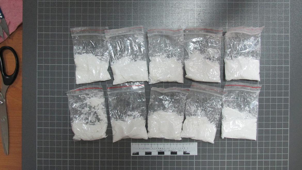 Полицейскими установлено, что злоумышленники хранили запрещённые вещества в съёмной квартире в Дзержинском районе, откуда было изъято более 400 граммов мефедрона, а также марки, содержащие в своём составе наркотическое средство ЛСД, в количестве 90 штук.