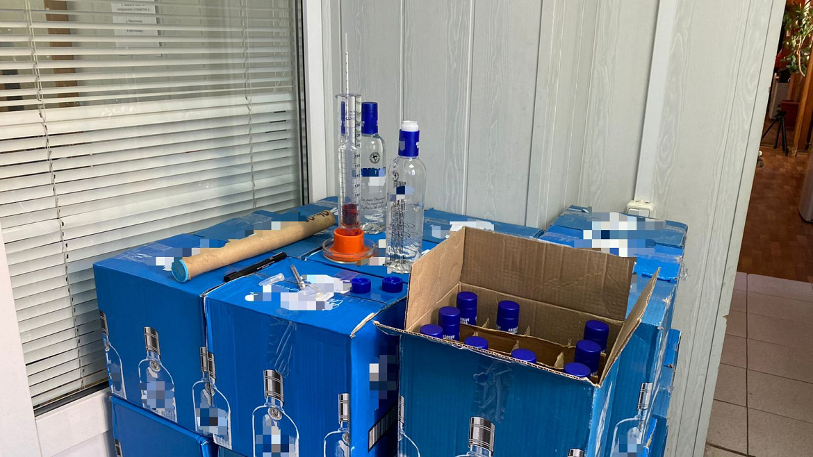 Во время обследования съёмного злоумышленниками дома, а также из 5 небольших универмагов полицейские изъяли 4 206 бутылок немаркированной водки. Общий объём обнаруженного составил более 1 900 литров, а стоимость превысила 2,9 млн рублей. Экспертиза установила, что найденное спиртное не соответствует ГОСТу по органолептическим и физико-химическим показателям.