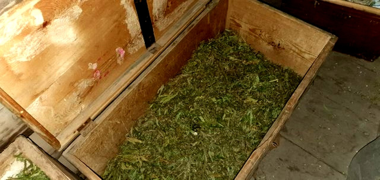 На территории домовладения фигуранта в амбаре, предназначенном для проживания домашнего скота и хранения сена, обнаружена и изъята растительная масса с характерным запахом наркотика, которая хранилась в деревянных ящиках и металлической ёмкости. Также в помещении обнаружены 36 кустов растения конопля в высушенном виде.