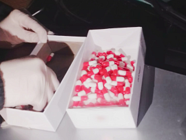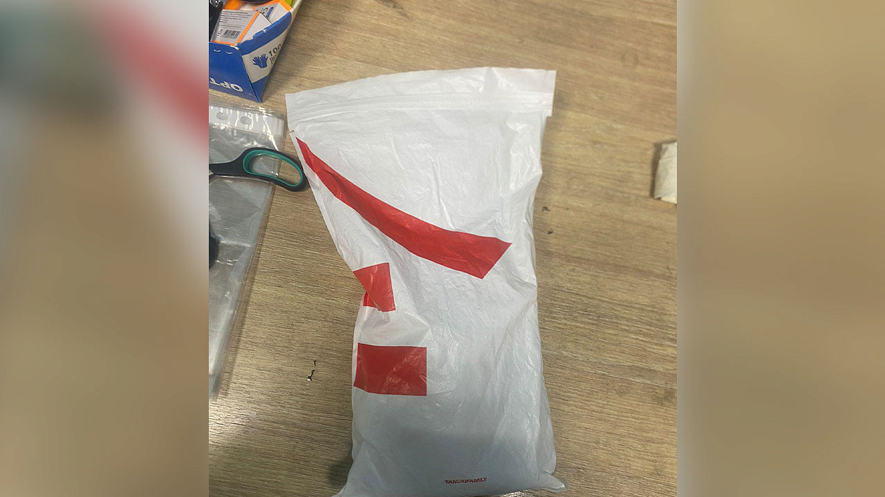 Мужчину доставили в дежурную часть полиции, где в ходе проведения личного досмотра в присутствии понятых правоохранители изъяли у мужчины полиэтиленовый пакет, примотанный скотчем к спине, с пятью вакуумными упаковками с коричневым веществом внутри.