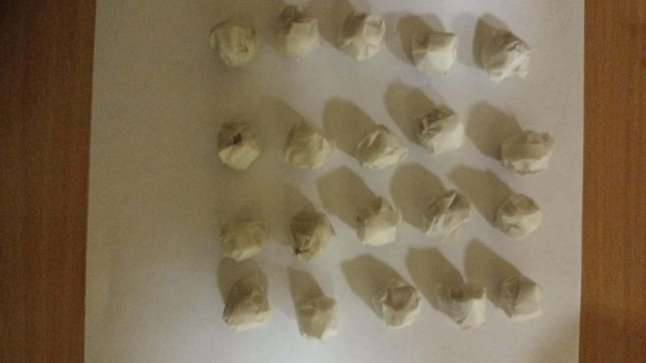 При личном досмотре в присутствии понятых транспортные полицейские обнаружили у мужчины в правом наружном кармане куртки полиэтиленовый пакет с 20 свёртками, в которых находилось комкообразное вещество бежевого цвета. Согласно заключению экспертов, это героин общей массой 10,18 грамма.