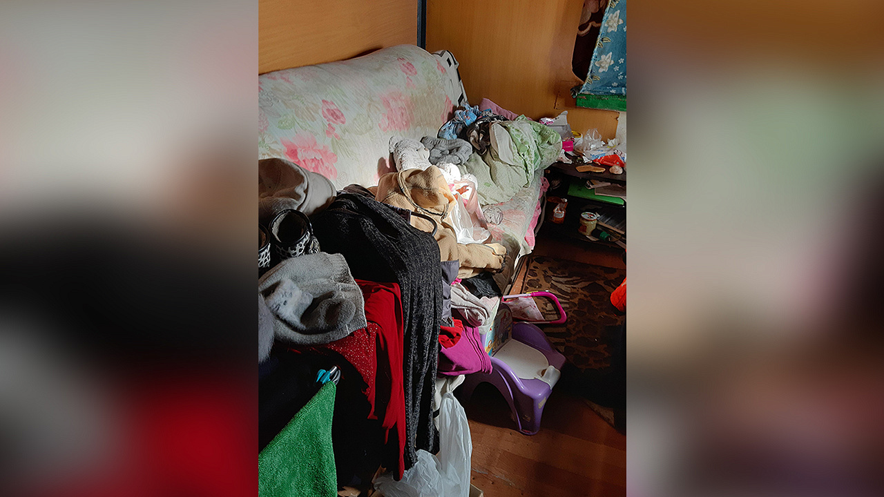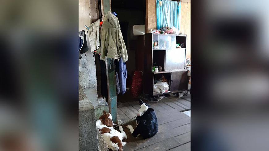 В помещении, где находился ребёнок, инспекторы ПДН обнаружили за печкой загон с новорождёнными телятами и козлятами, мешки с кормом для скота и ветеринарные медикаменты в открытом доступе. Детские вещи беспорядочно валялись по всей комнате, внутренний интерьер помещения с отпавшей со стен штукатуркой, некрашеными полами и нависшими проводами производил угнетающее впечатление.