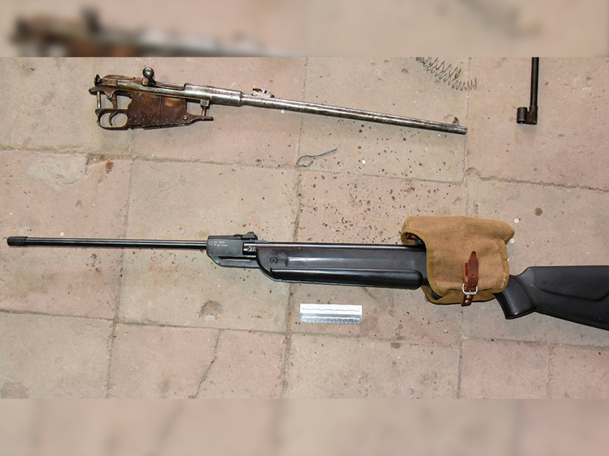 При проведении обыска по месту жительства 67-летнего местного жителя полицейские обнаружили и изъяли два карабина, около 50 составных частей к различным видам оружия и более 100 патронов разных калибров.