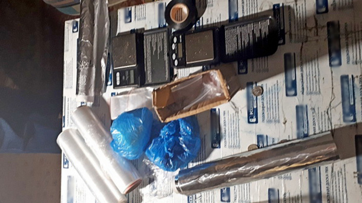 При обыске помещения полицейские нашли целый ряд вещественных доказательств преступной деятельности: электронные весы, упаковочный материал, одноразовые перчатки, скотч и изоленту.