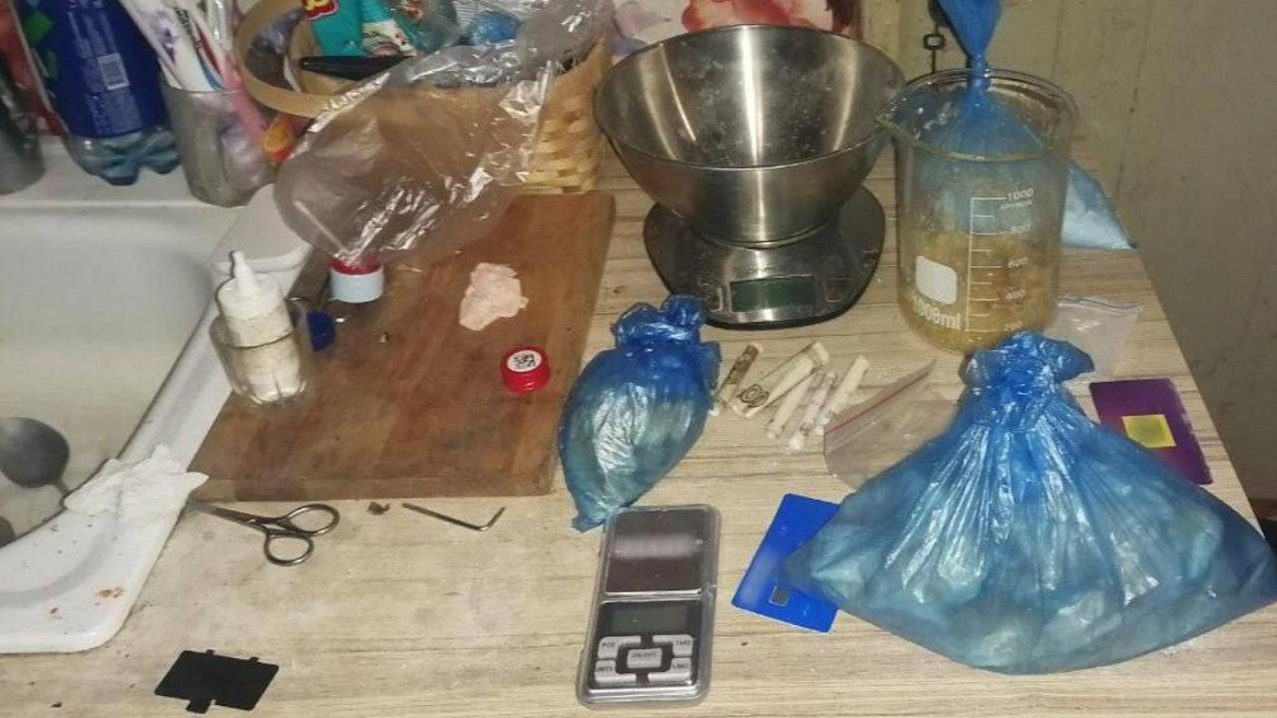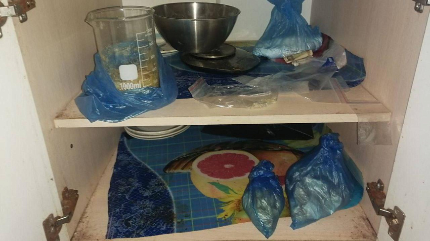 Наркотик также был обнаружен в дачном домике подозреваемого. Оттуда изъято 4 полиэтиленовых свертка с порошком и крупинками бежевого цвета, а также электронные весы и упаковочный материал, предназначенные для фасовки наркотических средств.
