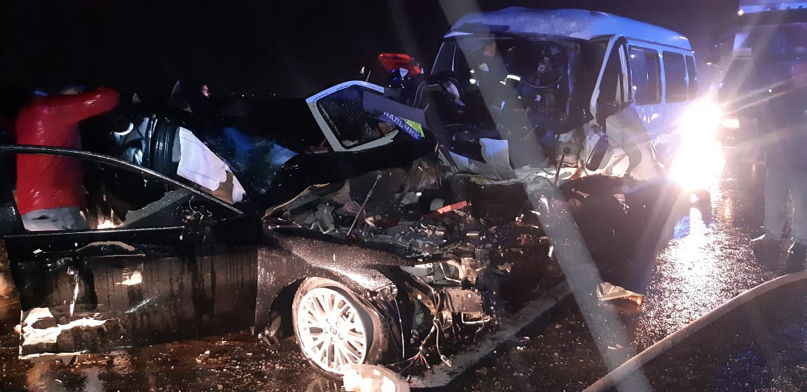 Сегодня в 21 час 50 минут на 432 км автодороги «Кавказ», на выезде из города Баксан Баксанского района Кабардино-Балкарии произошло лобовое столкновение автомашин Тойота и Газель.