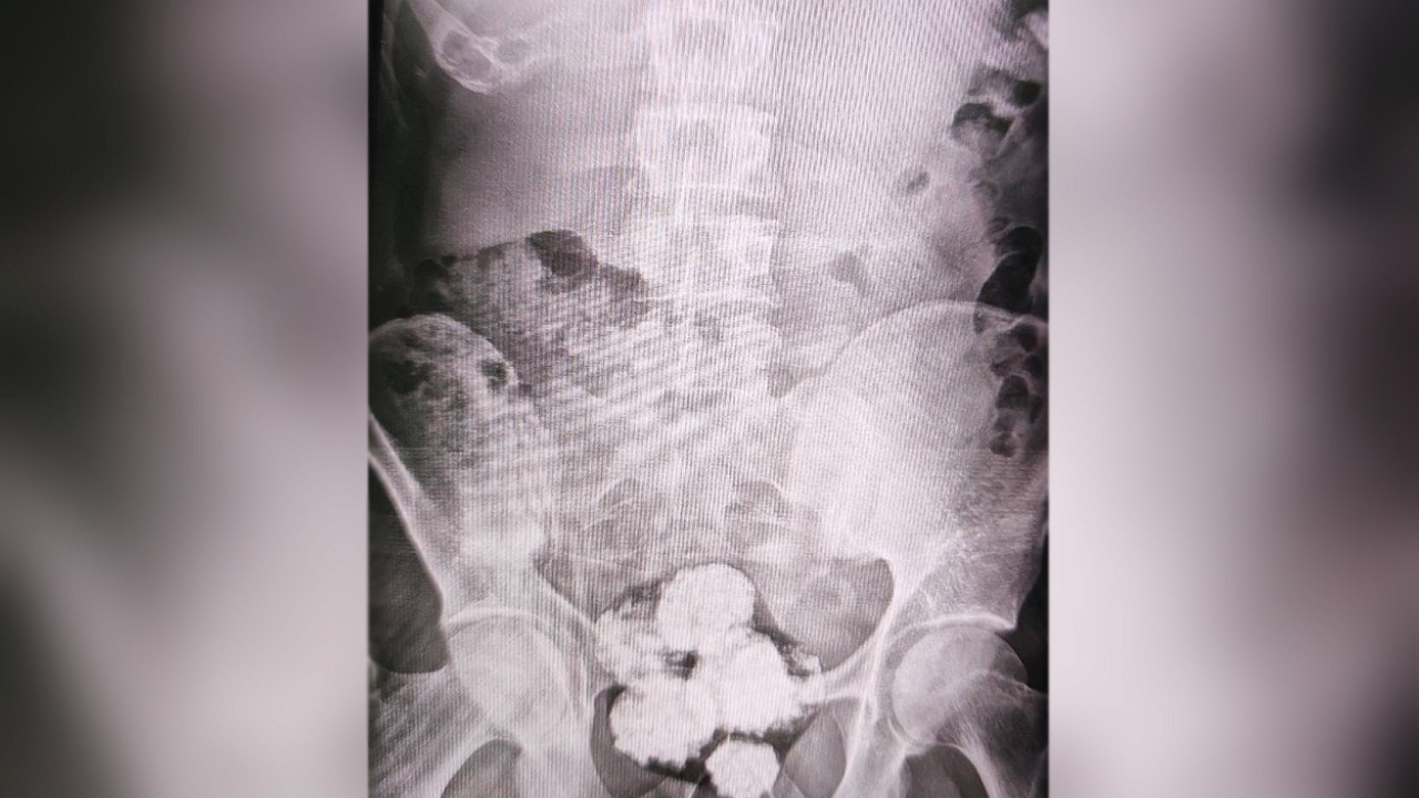 При личном досмотре мужчины заметно нервничали, однако каких-либо запрещённых веществ при них обнаружено не было. Тогда полицейскими было принято решение о проведении более тщательной проверки граждан в городской больнице, где с применением рентгеновского аппарата в желудке одного из приезжих было обнаружено пять шарообразных свёртков с неизвестным содержимым, а у второго – шесть схожих пакетиков. Экспертиза показала, что внутри свёртков находился метадон общей массой около 234 граммов.